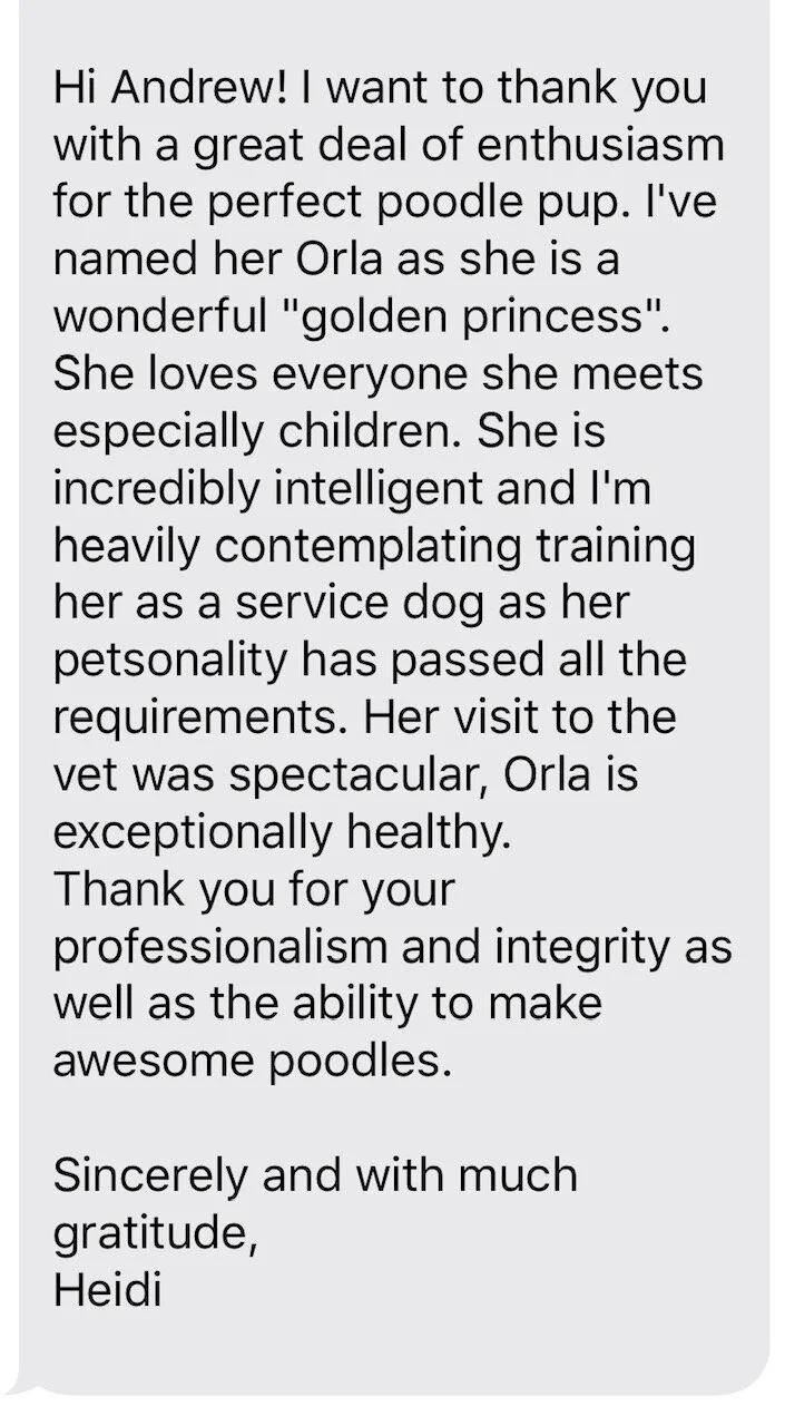 All of our puppies come from family dogs, bred with the intention of being family pets, service and/or therapy dogs.